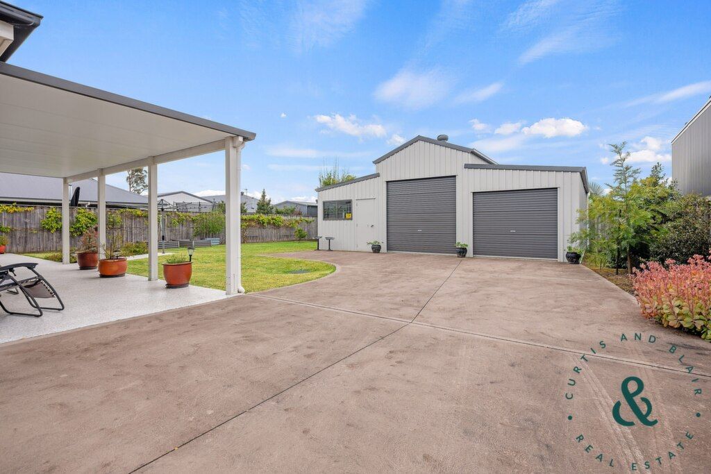 The island kitchen sits at the heart of it all, complete with a walk-in pantry, while outside, the 1000sqm block gives you fruit trees, raised veggie beds, and plenty of room for kids and pets to play. Car lovers, tradies, or tinkerers will appreciate the freestanding two-bay shed with over 75sqm of extra storage.